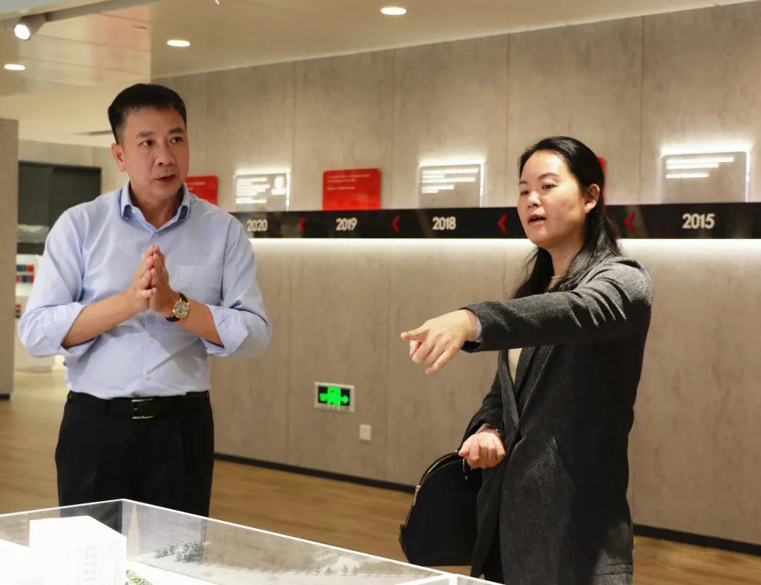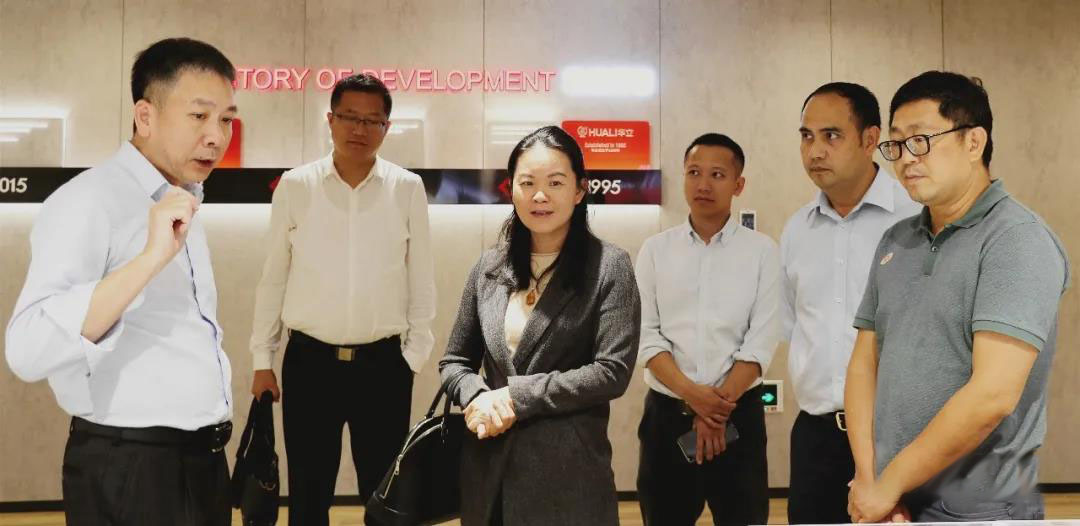 2020年11月25日,东莞水乡特色发展经济区管理委员会刘委员一行莅临广东虹湾供应链科技有限公司参观指导。华立股份董事长谭洪汝,董事卢旭球陪同刘委员一行参观了产品展厅,并向他们介绍了华立的发展历程以及未来规划。