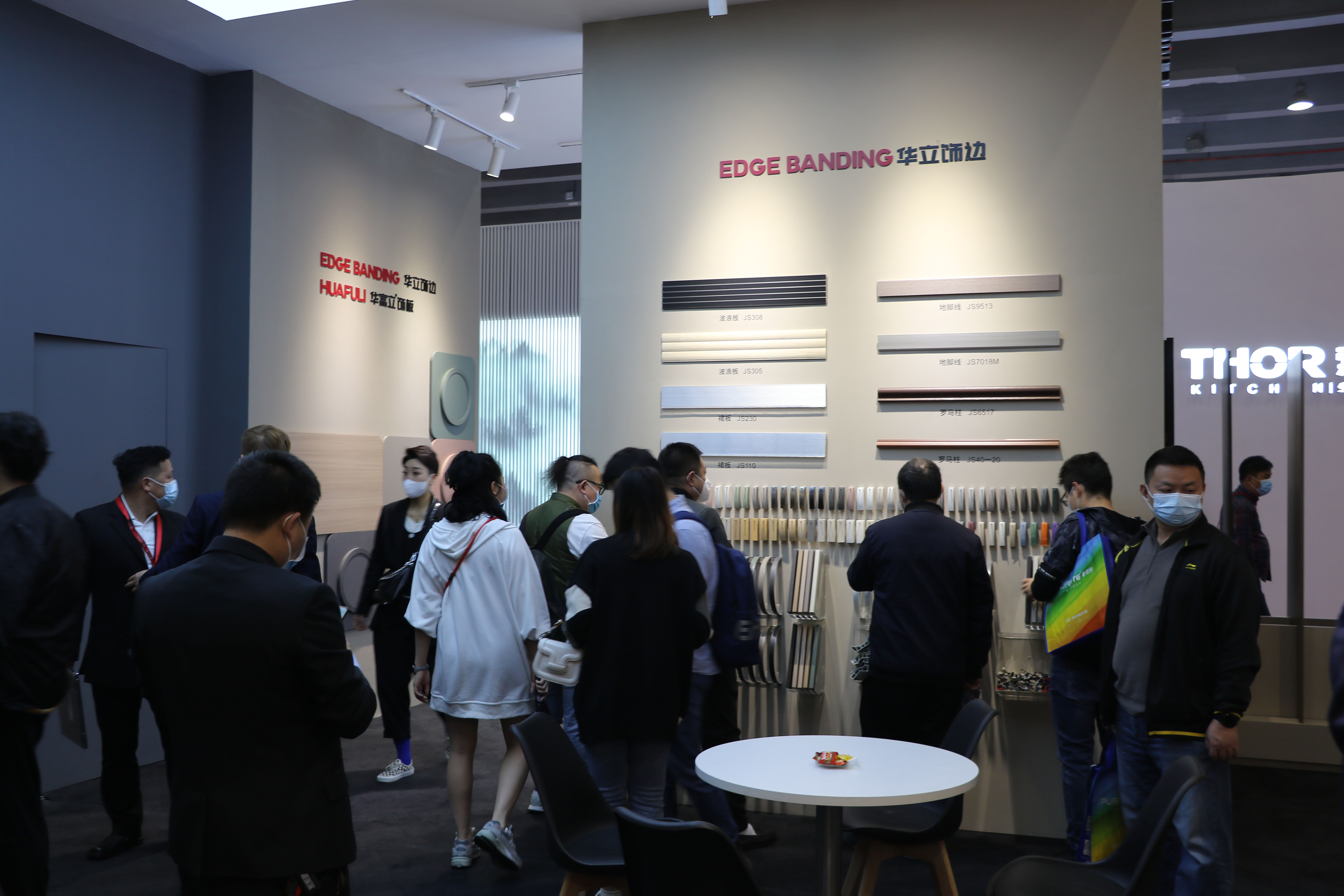 本次展会,华立股份立足“定制 · 精装材料服务商”的品牌定位,依托线上一站式家居建材采购平台——虹湾供应链,通过饰面板、饰边条、门套线等丰富的家居材料展示,向外界展示了自身的综合实力和服务品质,独具一格的风格,标志着华立的产品进入一个全新时代——引领家居潮流的新风尚。